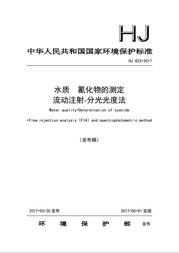 水質(zhì) 氰化物的測(cè)定 流動(dòng)注射-分光光度法(HJ 823-2017)