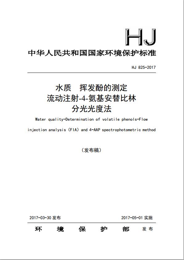 水質(zhì) 揮發(fā)酚的測(cè)定 流動(dòng)注射-4-氨基安替比林分光光度法(HJ 825-2017)