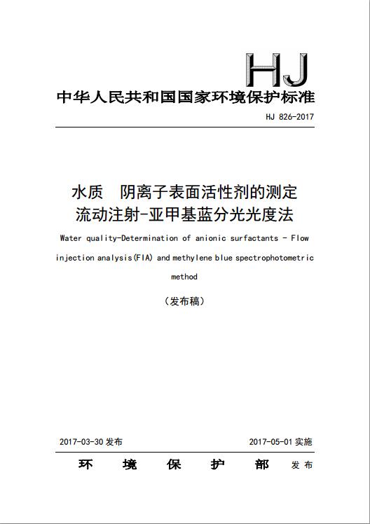 水質(zhì) 陰離子表面活性劑的測(cè)定 流動(dòng)注射-亞甲基藍(lán)分光光度法(HJ 826-2017)