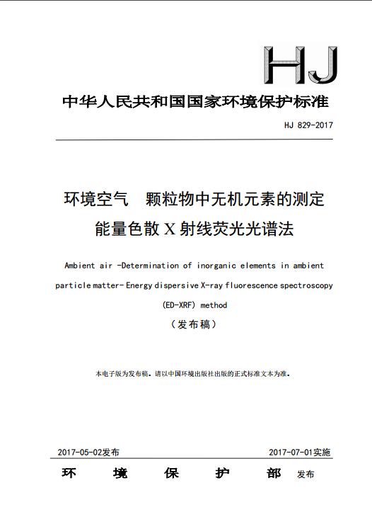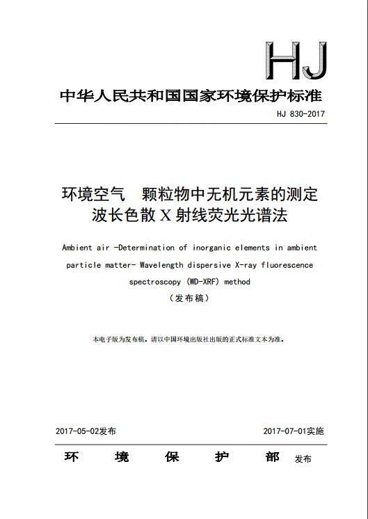 環(huán)境空氣 顆粒物中無(wú)機(jī)元素的測(cè)定 波長(zhǎng)色散X射線熒光光譜法(HJ 830-2017)