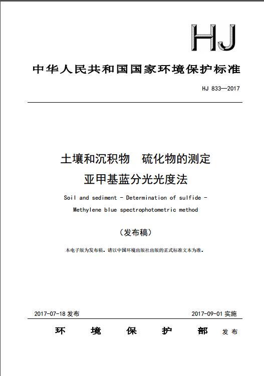 土壤和沉積物 硫化物的測(cè)定 亞甲基藍(lán)分光光度法(HJ 833—2017)