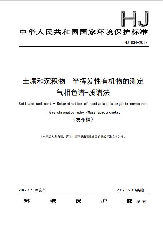 土壤和沉積物 半揮發(fā)性有機(jī)物的測(cè)定 氣相色譜-質(zhì)譜法(HJ 834-2017)