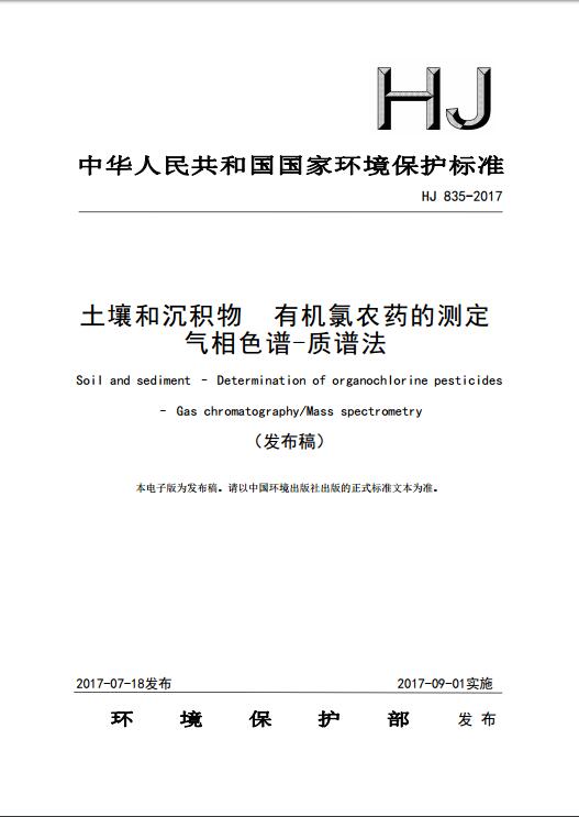 土壤和沉積物 有機(jī)氯農(nóng)藥的測(cè)定 氣相色譜-質(zhì)譜法(HJ 835-2017)